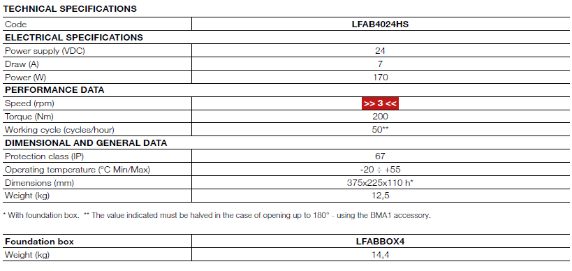 محرك L-FAB HS هو الحل المثالي لأتمتة البوابات المفصلية الكبيرة التي تتطلب أداءً سريعًا وقوة عالية مع الحفاظ على المظهر الجمالي، بفضل التركيب الأرضي المخفي بالكامل.